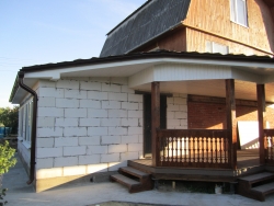 Дома из газоблоков и пеноблоков от 14400 руб./кв.м.Дома, построенные из пенобетона и газоблоков, всегда высокотехнологичны и отвечают современным требованиям, что позволяет строить в сжатые сроки и за один сезон. Пеноблок- это формовой или резной блок определенных размеров, который изготавливается из жидкой бетонной смеси, в состав которой входит песок, вода, цемент и пенообразователь. Иногда, для придания определенных свойств пенобетону, вводят пластификаторы, затвердеватели, фибры и другие добавки. Используются также для восстановления и реконструкции домов, в устройстве перегородок, которые хорошо заглушают посторонние звуки, для крыш и мансард, в заполнении пространства между стенами. Пенобетон является нетаксичным материалом и по экологичности уступает только дереву. Дом, построенный из пенобетона, выделяется низкой стоимостью затрат и долговечностью, его прочность со временем лишь увеличивается. Пенобетон обладает низкой теплопередачей стен, что позволяет отказываться от дополнительного утепления. Дома из этого материала отличаются повышенной пожарной безопасностью, в них отсутствует грибок и плесень, и из-за небольшой массы допускают использование облегченных материалов. Срок постройки (под чистовую отделку)От 3-4 месяцев (в зависимости от погодных условий, размера дома и сложности исполнения) Дом из газоблоков, отделанный облицовочным кирпичом |
